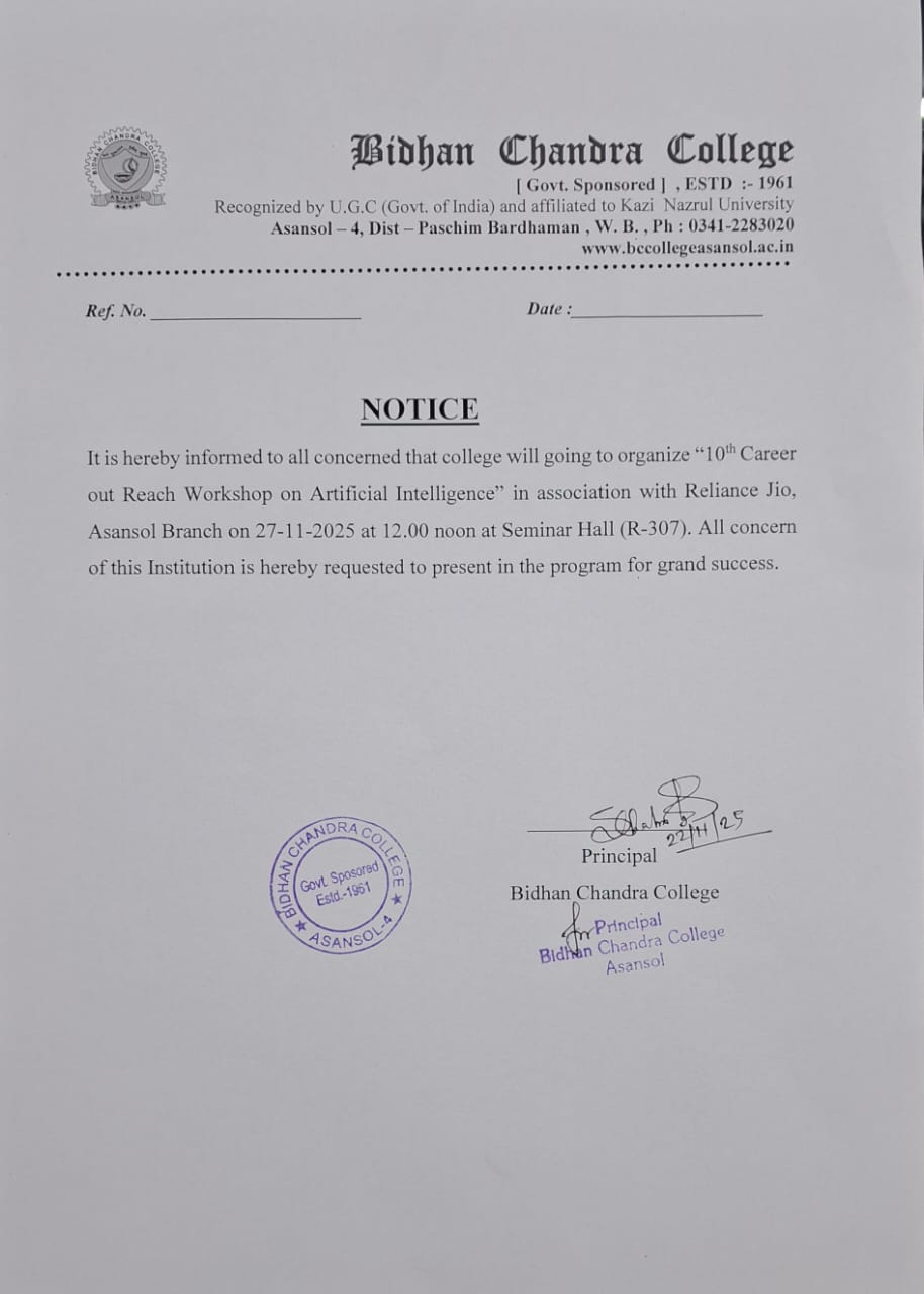 As one premiere institute of the formerly District of Burdwan and presently the District of Paschim Bardhaman, Bidhan Chandra College, Asansol, has long been engaged in the dissemination of knowledge and culture amongst the students from mainly the borderlands of West Bengal, Jharkhand, Bihar and Uttar Pradesh. Proud of its rich heritage as the only college being named after one of the founders of modern India, Dr Bidhan Chand...