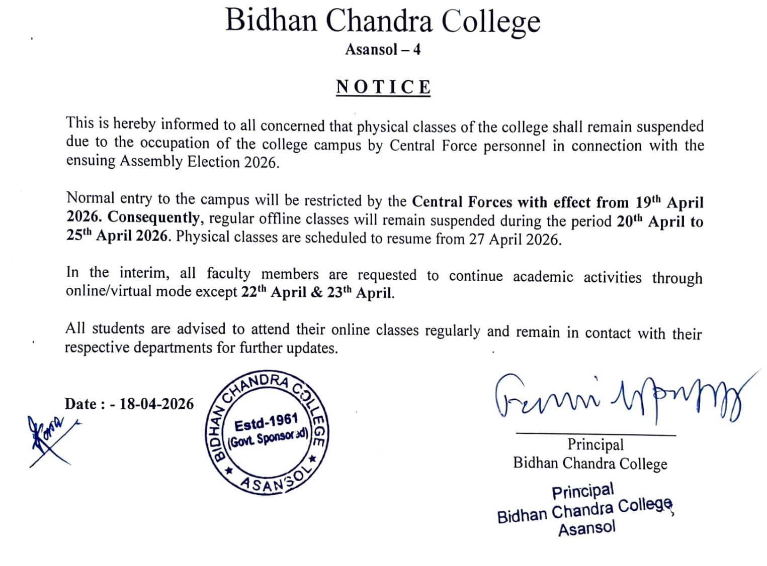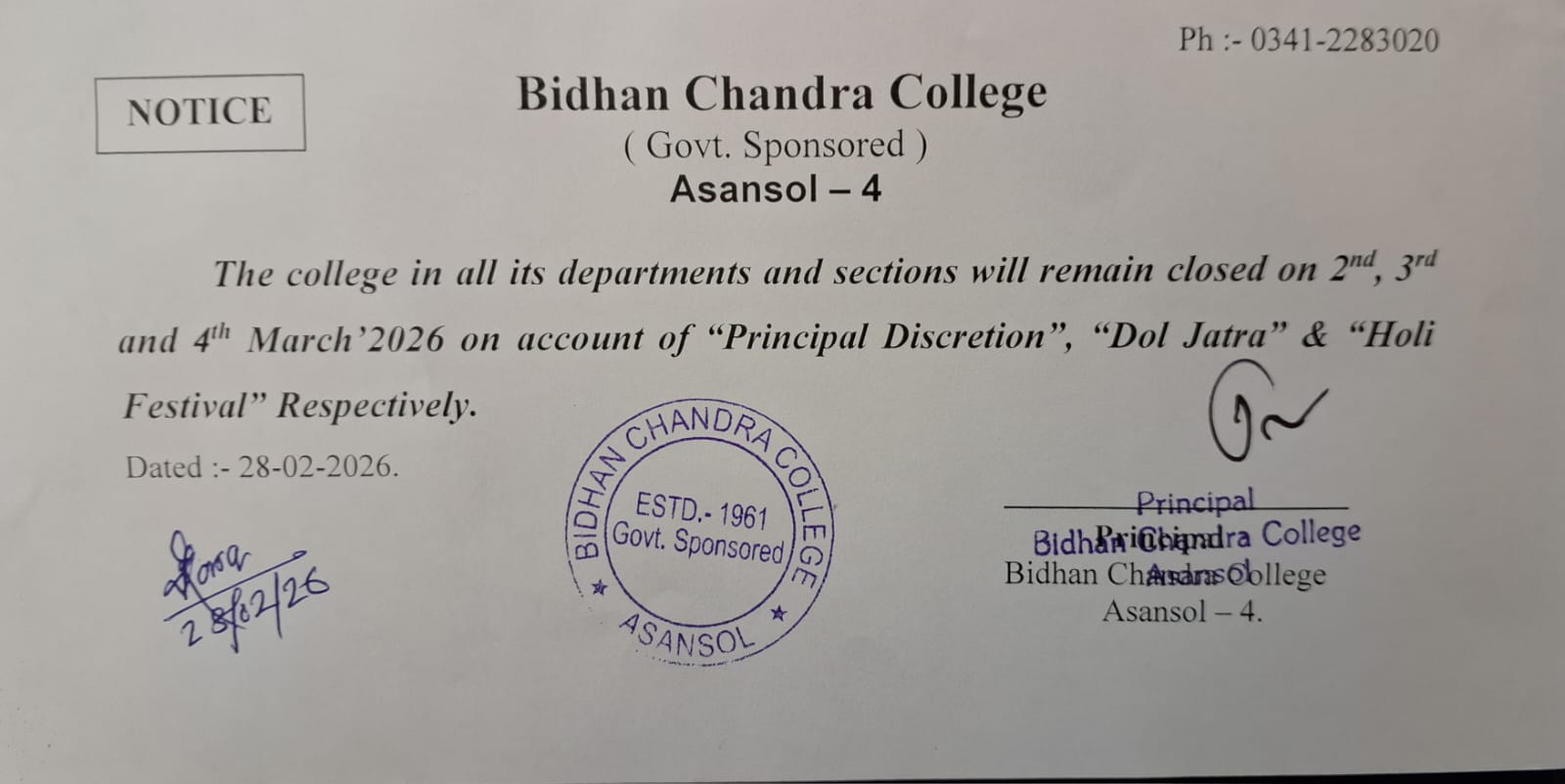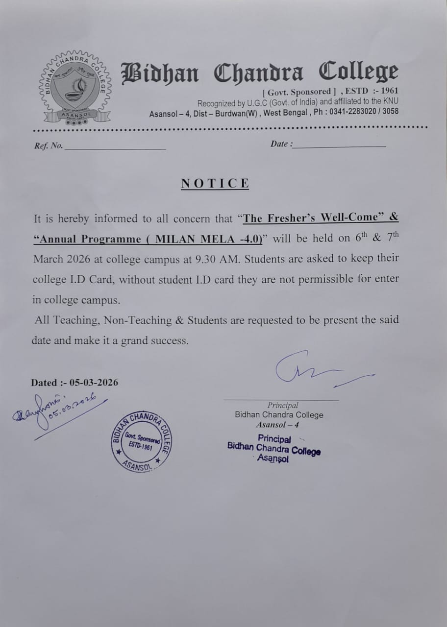 As one premiere institute of the formerly District of Burdwan and presently the District of Paschim Bardhaman, Bidhan Chandra College, Asansol, has long been engaged in the dissemination of knowledge and culture amongst the students from mainly the borderlands of West Bengal, Jharkhand, Bihar and Uttar Pradesh. Proud of its rich heritage as the only college being named after one of the founders of modern India, Dr Bidhan Chand...