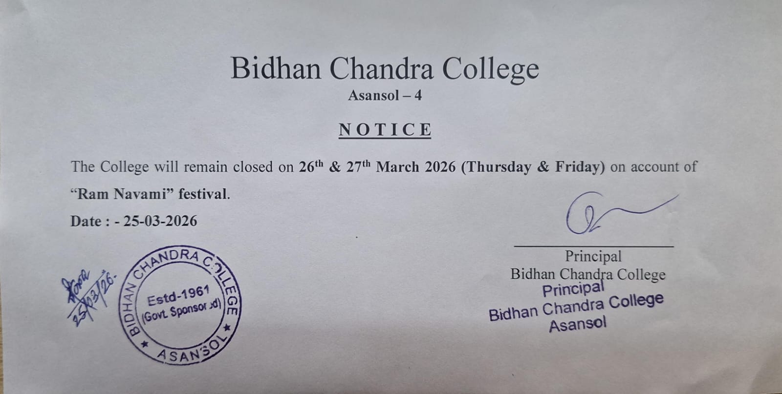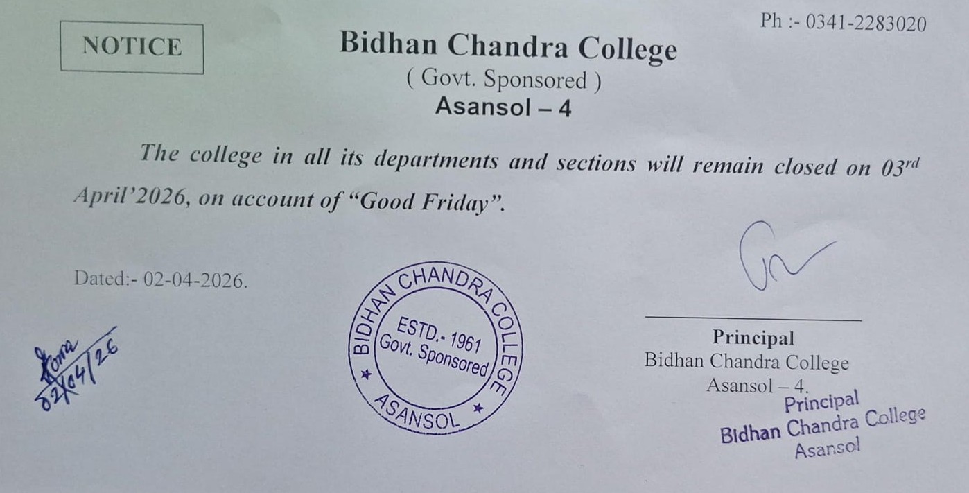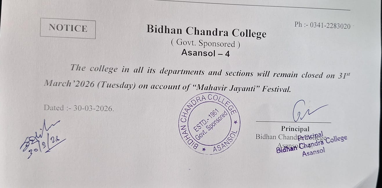 As one premiere institute of the formerly District of Burdwan and presently the District of Paschim Bardhaman, Bidhan Chandra College, Asansol, has long been engaged in the dissemination of knowledge and culture amongst the students from mainly the borderlands of West Bengal, Jharkhand, Bihar and Uttar Pradesh. Proud of its rich heritage as the only college being named after one of the founders of modern India, Dr Bidhan Chand...